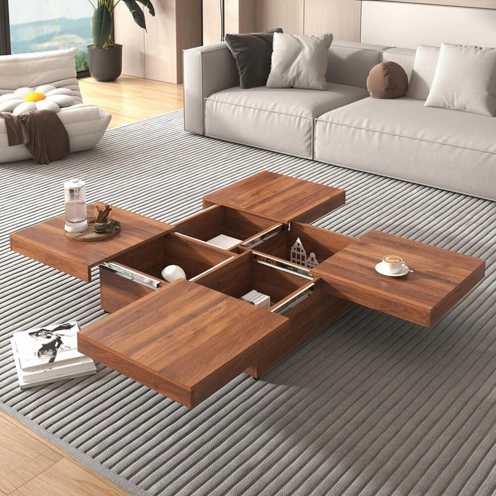 39.4'' Square Marble Veneer Coffee Table with Sliding Top Storage