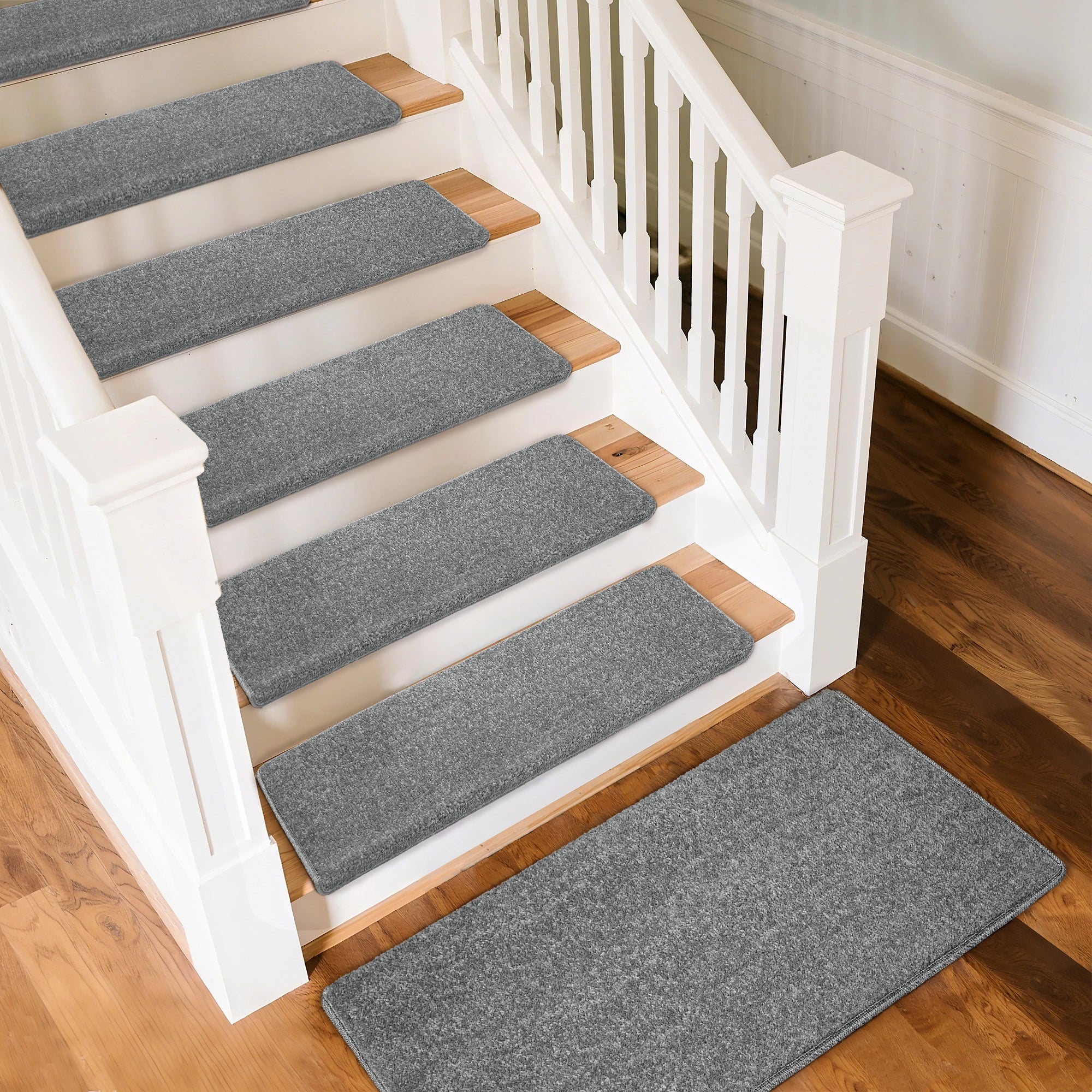 - Protective: These step treads protect your stairway from daily scratches wear and tear, and reduce noise. Suitable for all hard floors, including oak and other hardwood surfaces; Dimension: 9.5" x 30"x1.2", fits most indoor home stairs perfectly.