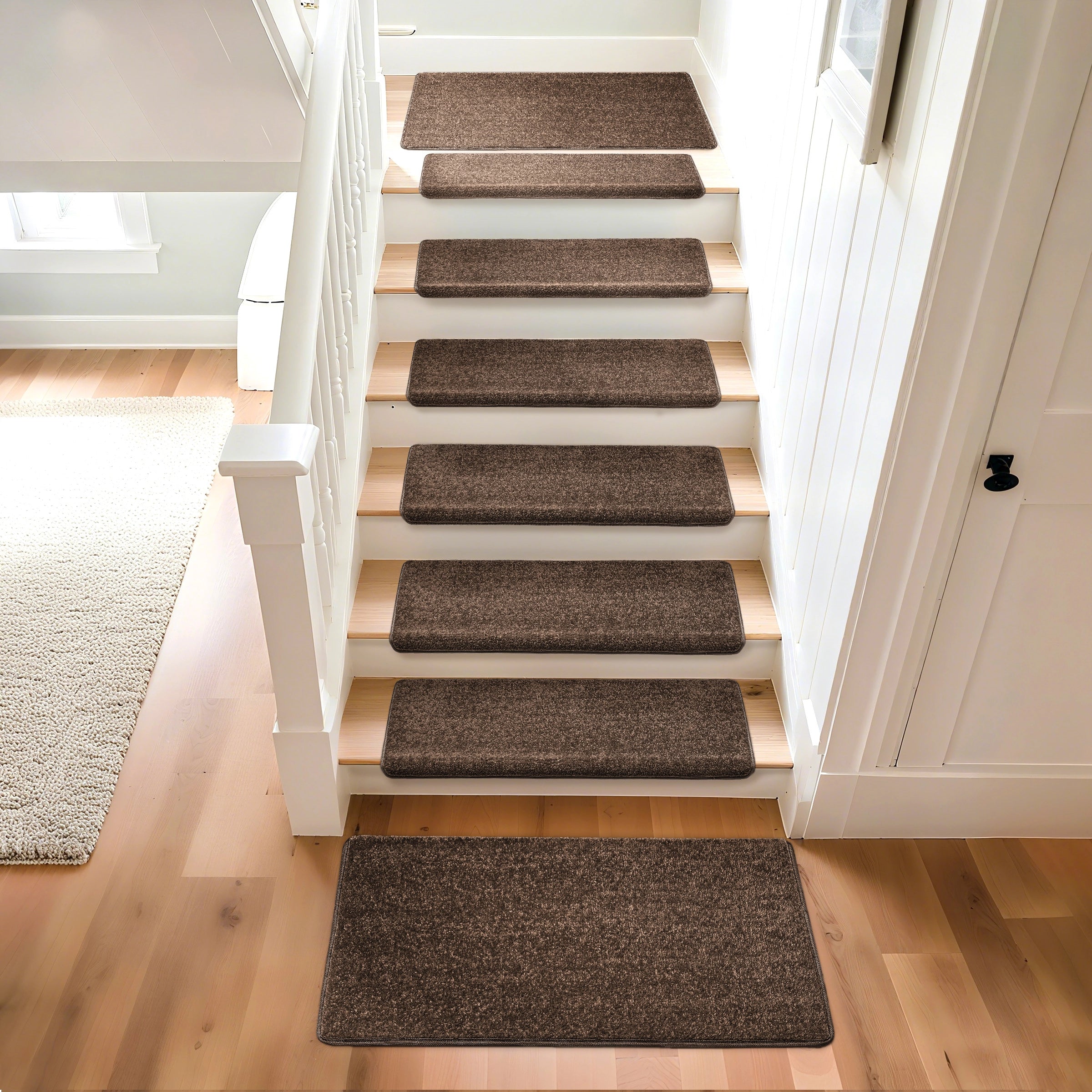 - Stylish: Made of a soft material with a simple solid brown design with bullnose, our stair treads are exceptionally durable, warm and comfortable under foot, and are easy to clean.