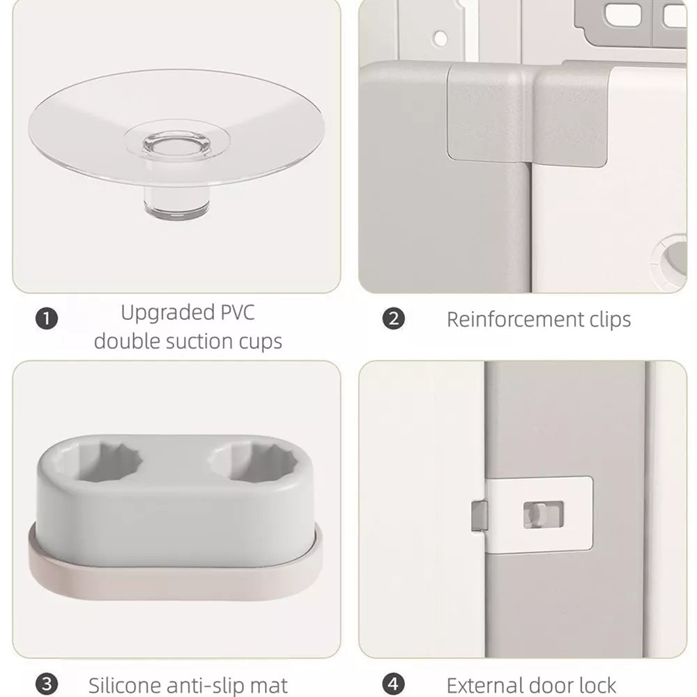 - Anti-slip PVC double suction cups and reinforcement clips at the bottom to firmly fix all the panels